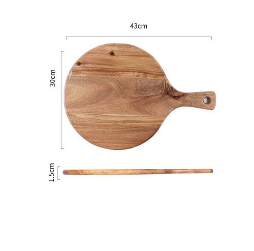 Acacia Wood Round Sustainable Pizza Board with Handle 1.5cm Thick Chopping Block for Home Kitchen