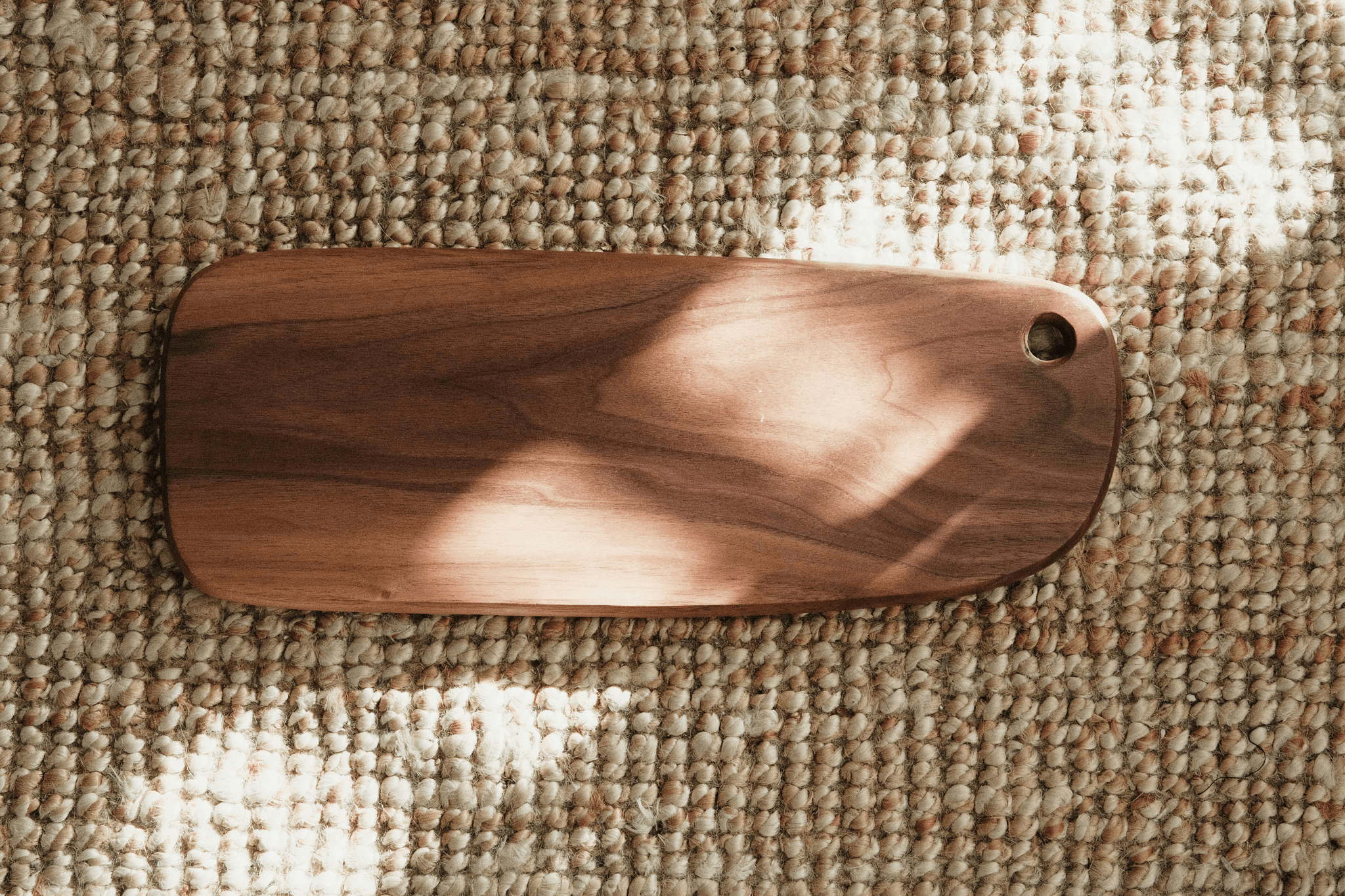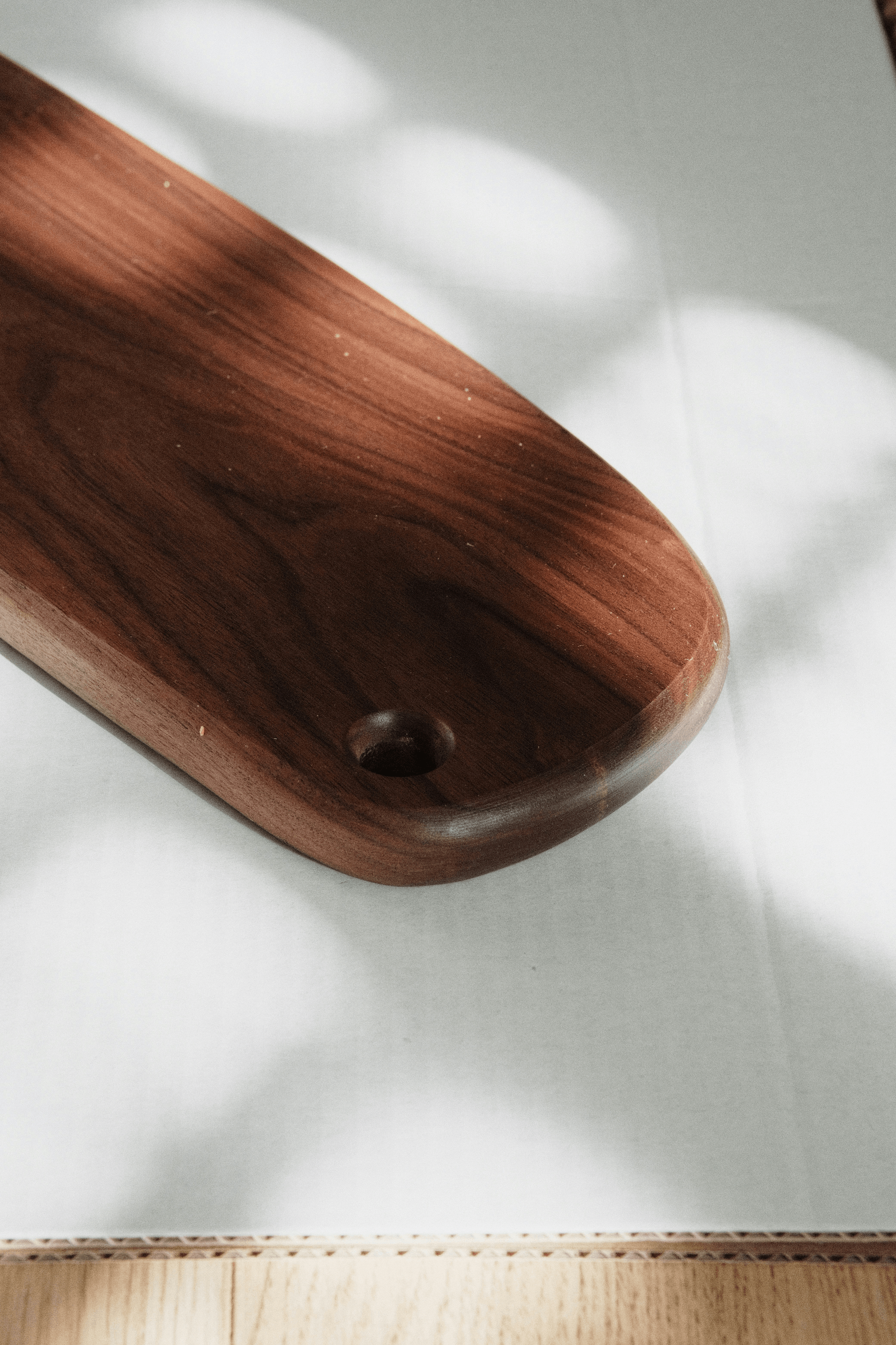 Introducing the epitome of understated luxury and natural artistry—our Solid Black Walnut Serving Board. Meticulously crafted from a single piece of premium American Black Walnut, each board is a unique masterpiece, showcasing the wood’s deep, rich chocolaty hues and captivating grain patterns. This isn't just a serving board; it's a statement piece designed to elevate your cheese spreads, charcuterie arrangements, artisanal breads, and gourmet appetizers into a stunning visual feast.