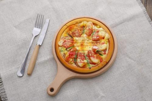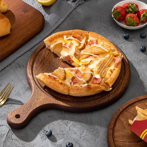 The wooden plate has natural moisture absorption, which can effectively absorb excess water vapor at the bottom of the pizza, prevent the cake from collapsing, and enhance the crispy taste. This is an advantage that metal or slate cannot match.